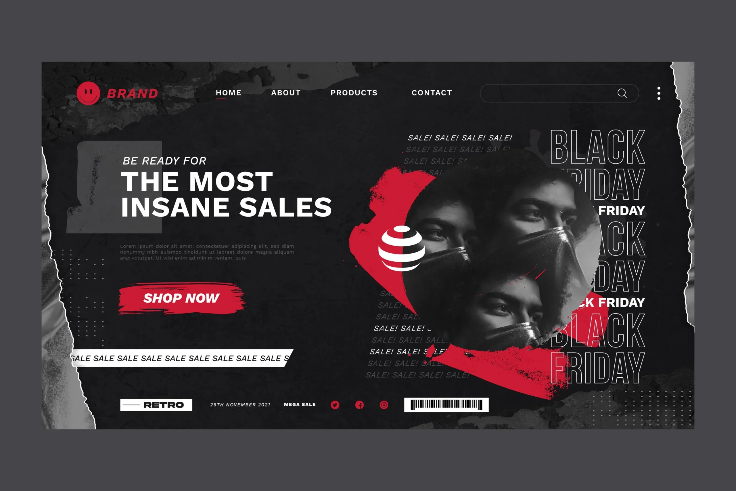 Terinspirasi dari majalah RAW dan estetika punk rock, brutalism modern Menunjukan kejujuran visual, menyingkirkan dekorasi yang tidak perlu dan menampilkan desain apa adanya.