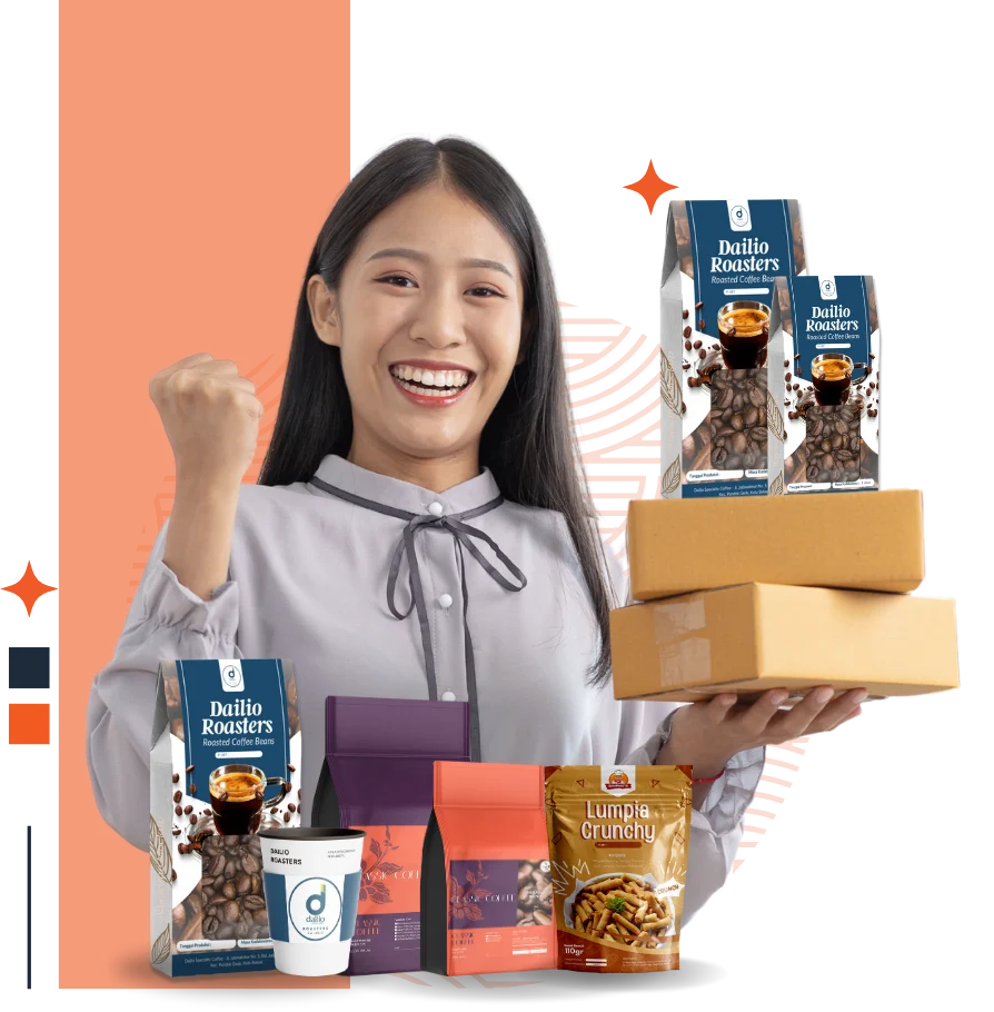 Dapatkan desain kemasan unik yang sesuai dengan identitas brand kamu.
